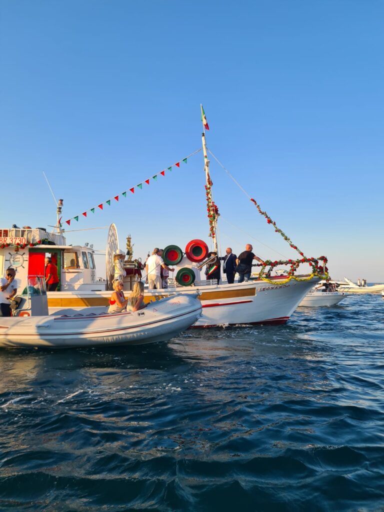 Venho fazendo um trabalho espiritual muito forte que está me aproximando das minhas raízes, na honra dos meus antepassados. Foi nesse movimento que resolvi, em junho de 2022, ir para Polignano para participar da festa mais tradicional da cidade, a Festa de São Vito, o santo padroeiro. Meu sonho era fazer a procissão via mar, e realizei! Não sei descrever em palavras o que senti. Era uma tarde maravilhosa de verão, que se encerrou com um por do sol avermelhado, com aquele visual dos barcos seguindo o barco principal com o São Vito, além das autoridades locais e o padre Don Gaetano, que abençoava todos os espectadores que ali estavam acompanhando a procissão por terra. Simplesmente uma atmosfera mágica, que ficará guardada na minha memória para sempre.
