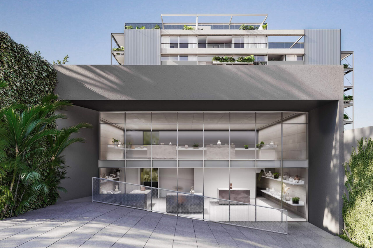 Tem fachada elegante que vai se destacar na paisagem do bairro, mas com a delicadeza de um edifício de apenas nove andares.