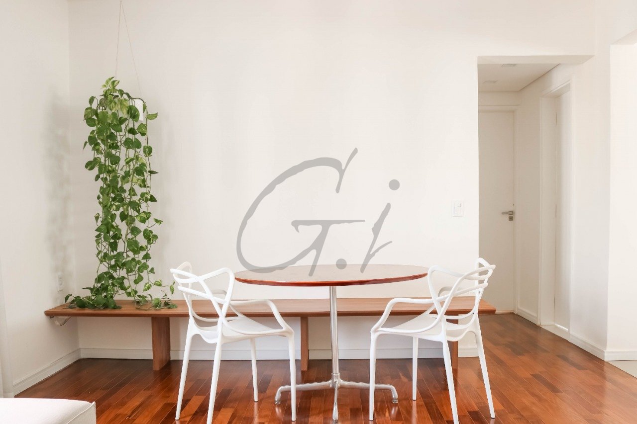 Área social com sala de estar, jantar e cozinha integradas. Marcenaria inteira e revestimentos novos, bancadas em pedra, louças e metais.