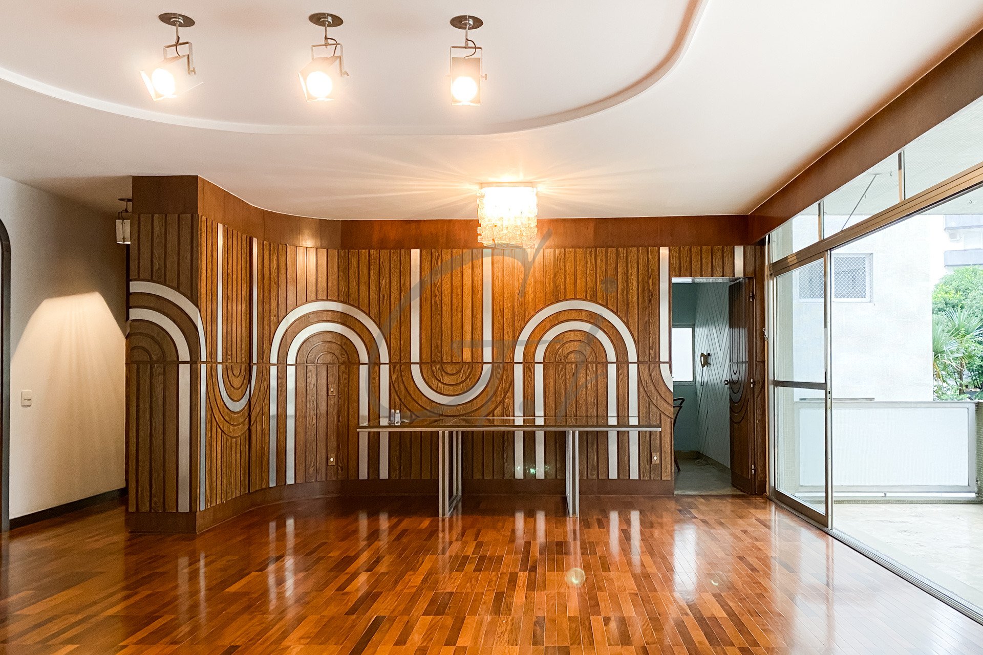 Apartamento integrado com varanda e piso em tacos em ótima localização em Higienópolis.
