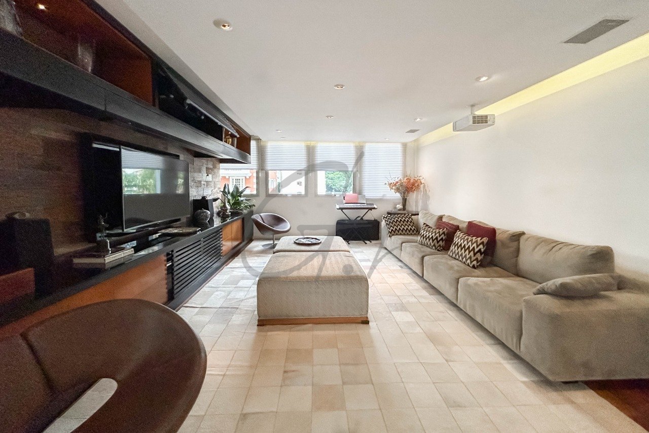 Apartamento na parte plana do Jardim Paulista com piso de madeira, ar condicionado e marcenaria impecável.