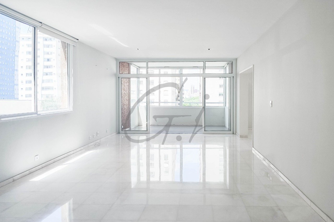 Apartamento com ambientes amplos, pé direito alto e muita luminosidade trazida pelos janelões.