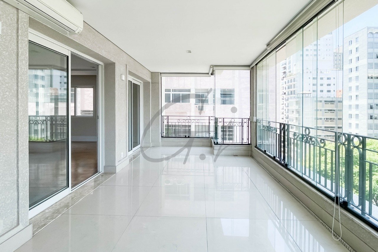 Área social com ampla varanda envidraçada, pé direito alto, ambientes amplos e piso em madeira.