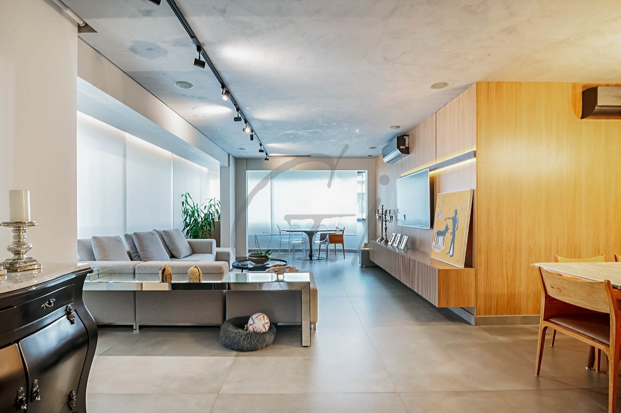 Área social, escritório e dormitórios possuem ar-condicionado. Há sistema de som embutido no teto e bonito projeto de iluminação.