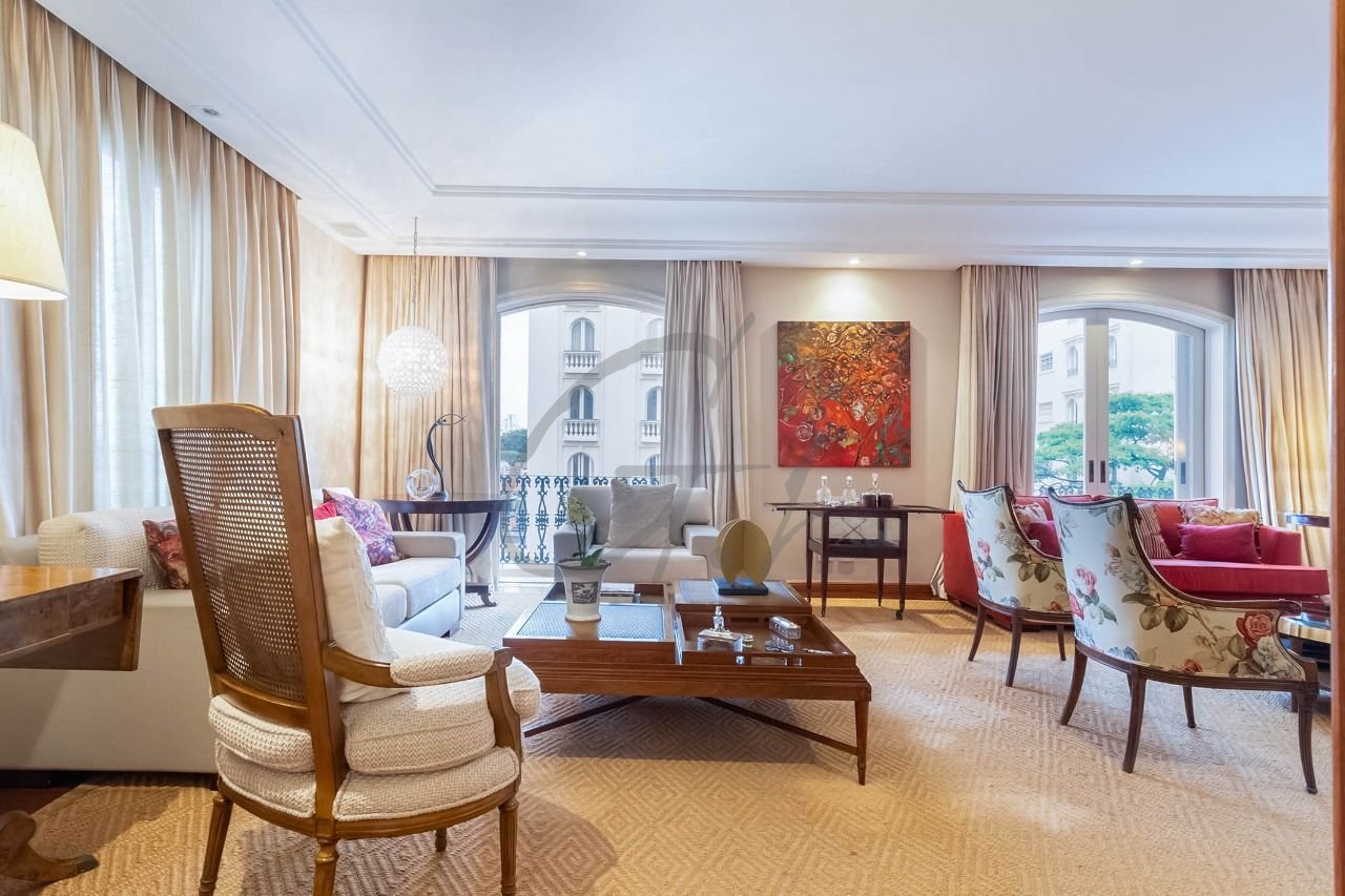 Apartamento em estilo neoclássico em localização cobiçada na melhor rua dos Jardins, com uma vista aberta para todo o Clube Paulistano. O apartamento conta com um living amplo e iluminado e quatro dormitórios, sendo três suítes com piso em neobambu. A suíte master tem closet e banheiro senhor e senhora. A cozinha é clara e funcional, com muita luminosidade e repleta de armários. O apartamento conta, ainda, com ampla área de serviço com lavanderia completa e espaçosa e dependência de funcionários.