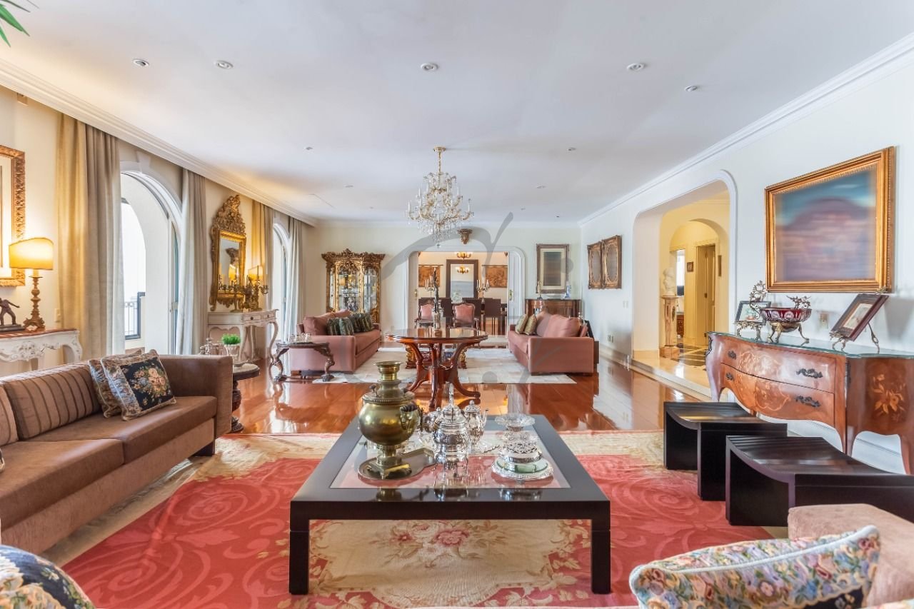 Apartamento de estilo clássico que oferece ambientes amplos e iluminados.