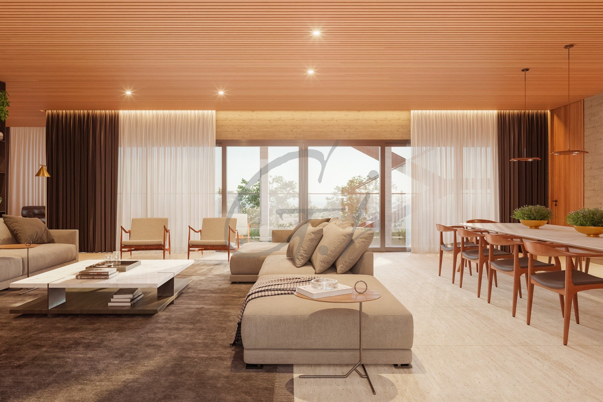 Área social toda integrada com sala de estar, jantar, cozinha e acesso à varanda.