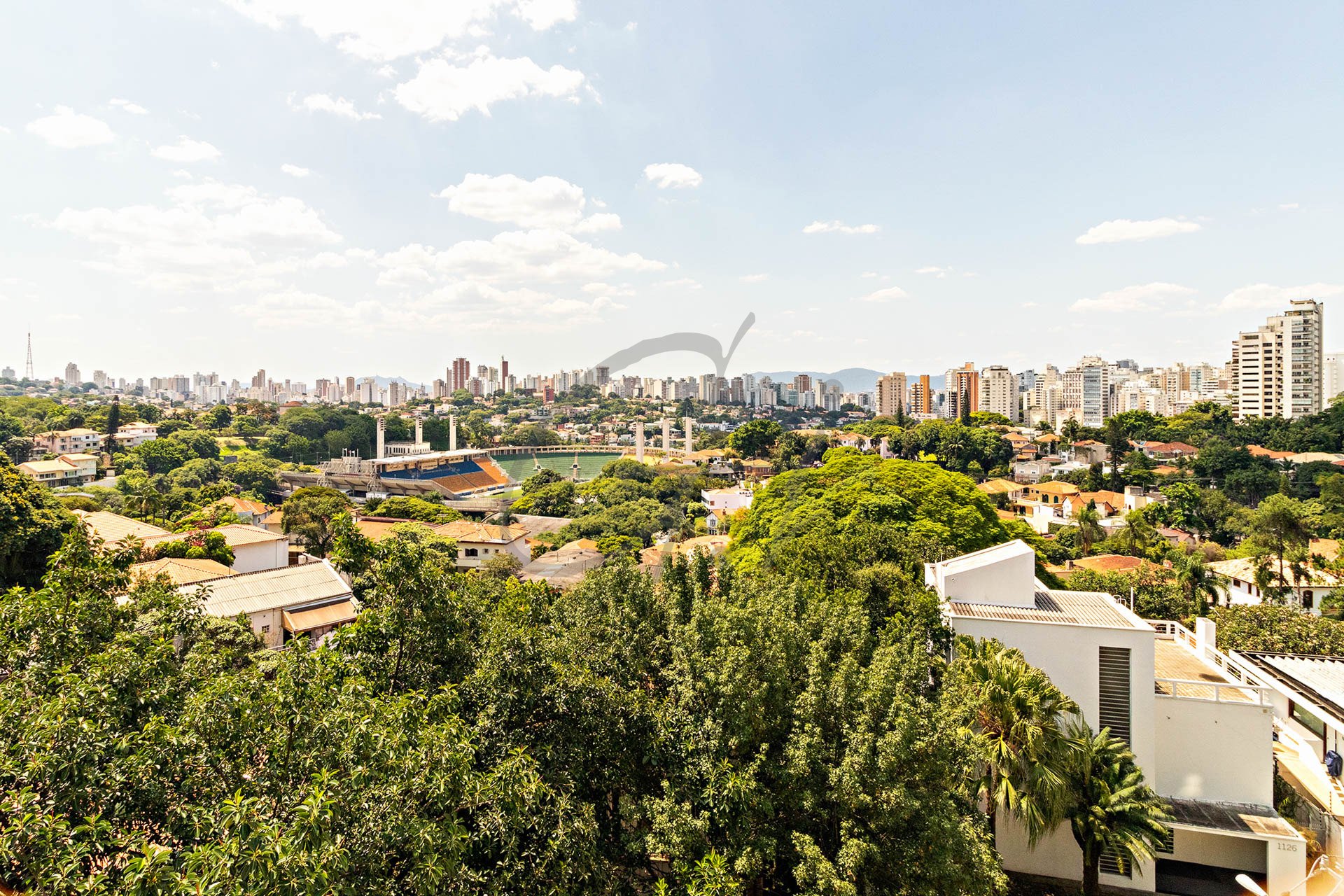 Apartamento com ambientes espaçosos, janelões e vista para o Pacaembu.