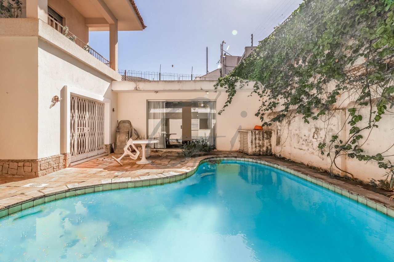 Na área externa, paisagismo que incorpora o ambiente e piscina.