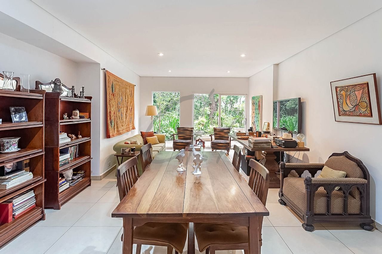 Amplas janelas emolduram uma vista verde, criando uma conexão harmoniosa com a natureza e permitindo a entrada abundante de luz natural, que banha cada canto.