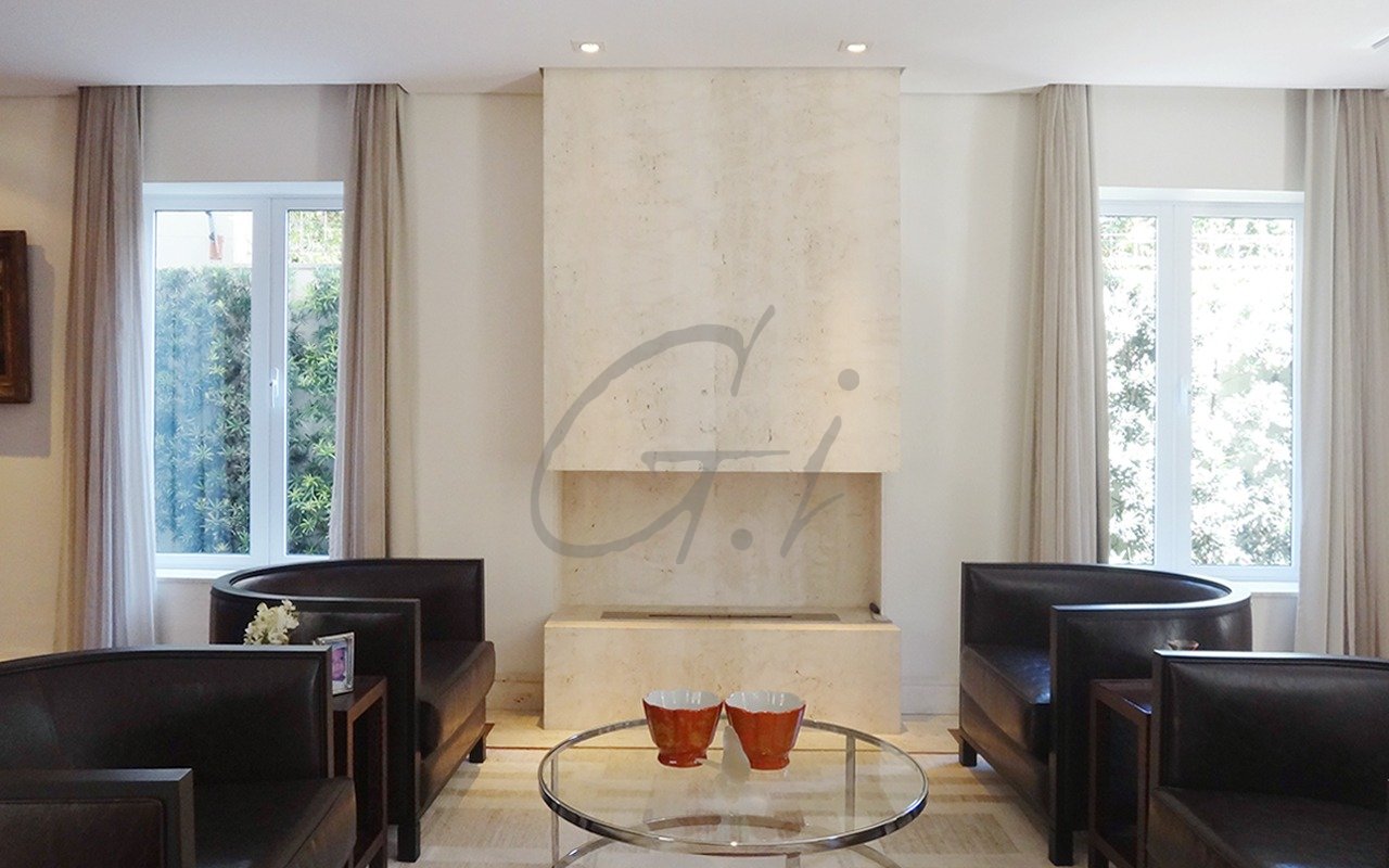 Reformada há três anos, teve os ambientes da sala de estar, jantar, lareira ecológica e home theather integrados e envolvidos por grandes janelas.