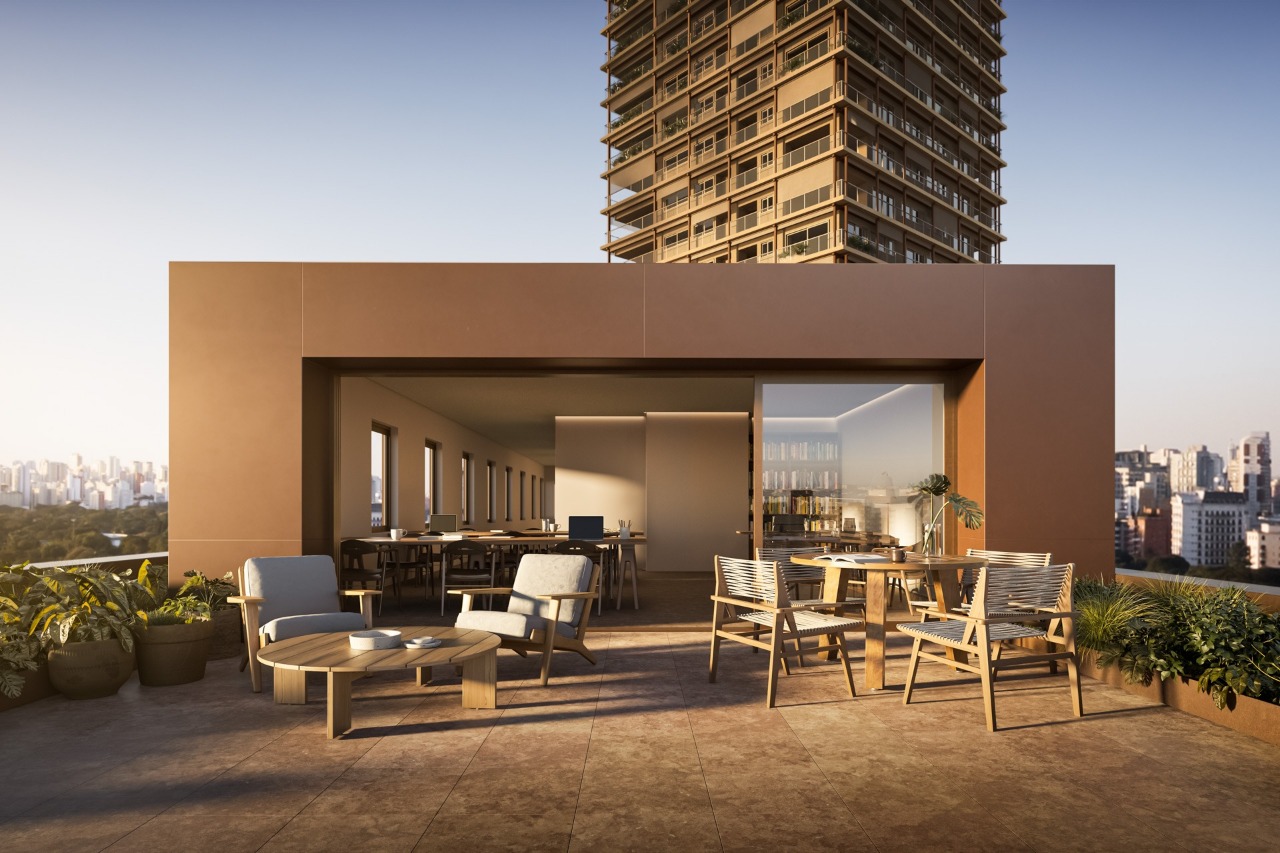 Para o grande fluxo da Avenida 9 de Julho, a Praça DAMATA se abre, permeada de vegetação,